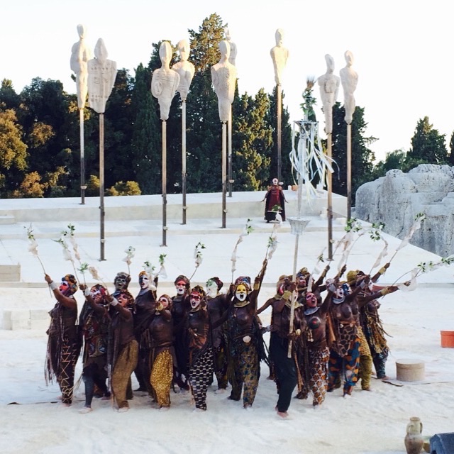 interessato. Un pubblico normale, che rumoreggia per il ritardo accumulato, ma che poi si lascia conquistare completamente dalla forza evocativa di quei canti che catturano lo spettatore dal primo minuto e non lo lasciano più distrarre, anche al netto dei cali di tensione fisiologici in uno spettacolo di novanta minuti. Non me ne vogliano i puristi, i filologi veri o quelli con la terza media che mi avevano sconsigliato di vedere Le Supplici, ma io credo di aver assistito a uno spettacolo che ha mostrato un possibile futuro della rappresentazione classica. Non sto parlando di un modo corretto o di uno sbagliato di pensare una tragedia, ma di un modo diverso, rivoluzionario se volete. E nella diversità c’è sempre qualcosa da imparare. La scelta di rappresentare Eschilo mischiando siciliano e greco moderno, melodie tradizionali e balli etnici, rappresenta un’operazione di grande valore culturale ed artistico. Rileggere un classico e reinterpretarlo lasciando inalterato il significato e la poetica alla base non è un’operazione semplice, tanto più se lo si trasforma in una grande opera pop. Io mi sono emozionato come non mi accadeva da anni. Sicuramente, il motivo dell’accoglienza dei profughi, così come quello della violenza sulle donne, ha giocato un ruolo fondamentale nel generare emozioni così forti, ma in generale, quello che viene fuori è la forza drammatica delle tematiche che Eschilo, duemilacinquecento anni fa, ha piazzato nel suo testo. Democrazia, libertà, accoglienza, volontà del popolo sono sempre presenti, si fanno largo nella nostra coscienza, anche quando Pelasgo canta in greco e non dovremmo capirlo ma sappiamo benissimo cosa sta dicendo o quando, nel parapiglia della cattura delle supplici, l’unico punto di riferimento è la musica ed il suo incedere ostinato. Ben vengano interpretazioni di questo tipo, capaci di comunicare a tutti, di ridare luce a valori universali, di smuovere gli animi, di ricordarci da dove veniamo e quanto è stato travagliato il percorso della nostra civiltà che non può e non deve fermarsi al parcheggio in doppia fila per consumare una carne di cavallo e sbizzero, al gratta e vinci che ci cambia la vita ed alle ricariche telefoniche consumate inviando freneticamente emoticon dei quali ignoriamo il significato.