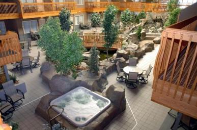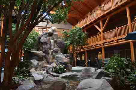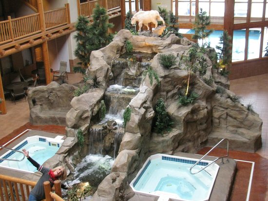 Il mattino successivo, affamati, seguiamo le indicazioni per la colazione e ci troviamo davanti un portale maestoso con l’incisione Springwater Hall. Tirando la maniglia un forte odore di cloro ci prende alla gola. Dico a Donatella: “ma dove minchia la fanno la colazione, in piscina?”. Lei risponde che non può essere e che sicuramente abbiamo sbagliato sala. Invece è quella giusta e non è una piscina, o almeno non proprio. Ci facciamo largo tra vasche in vetroresina di varie dimensioni e profondità, poi ci fermiamo increduli lì, al centro della sala, esattamente dove l’architetto che ha progettato il C’mon Inn, aveva stabilito. Ai lati della sala, due gigantesche montagne di plastica. Sulla cima della prima, dalla quale sgorga una possente cascata, fa bella mostra un caprone impagliato; alla base dell’altra, una porta tipo saloon attraverso la quale il personale accede alla cucina. Adocchiamo delle piccole