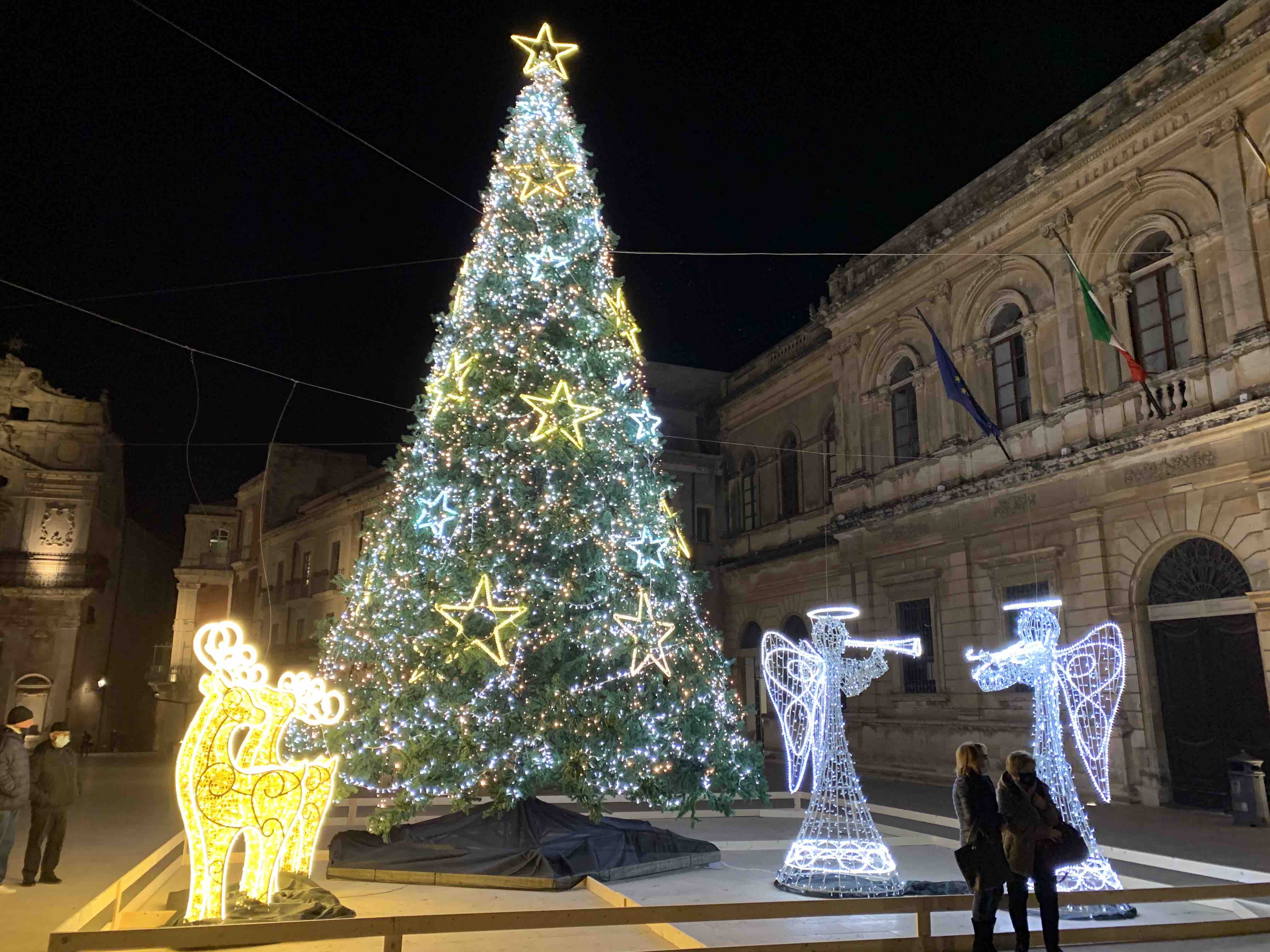 Dopo l’albero separè, quello tortile, quello con le palle giganti ma senza messa a terra e dopo aver scartato l’opzione “Rosso Fuoco” fortemente suggerita da Tekra e che prevedeva un rogo perenne di rifiuti dentro un telaio a forma di pino silvestre, l’amministrazione ha scelto per Piazza Duomo un maestoso abete decorato in maniera tradizionale. Simbologia, fede e tradizione sono i concetti alla base dell’allestimento commissionato alla prestigiosa agenzia “Abberi e Sogni” di Cassaro, che ha sviluppato il progetto. Secondo la critica, le stelle che sormontano l’albero raffigurerebbero gli assessori della giunta Italia, dai più scarsi su, su, fino ai preferiti Coppa e Fontana, posti poco sotto la stella più brillante del sindaco; sulla destra, due cavalli adornati da corone di sbizzero e sassaemayoness a simboleggiare prosperità e abbondanza e sulla sinistra, due angeli guerrieri che rappresenterebbero l’eterna lotta tra TAR e CGA.