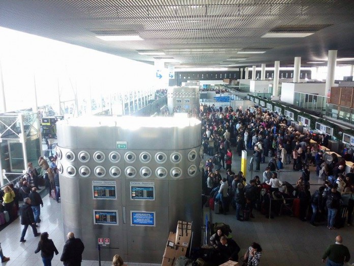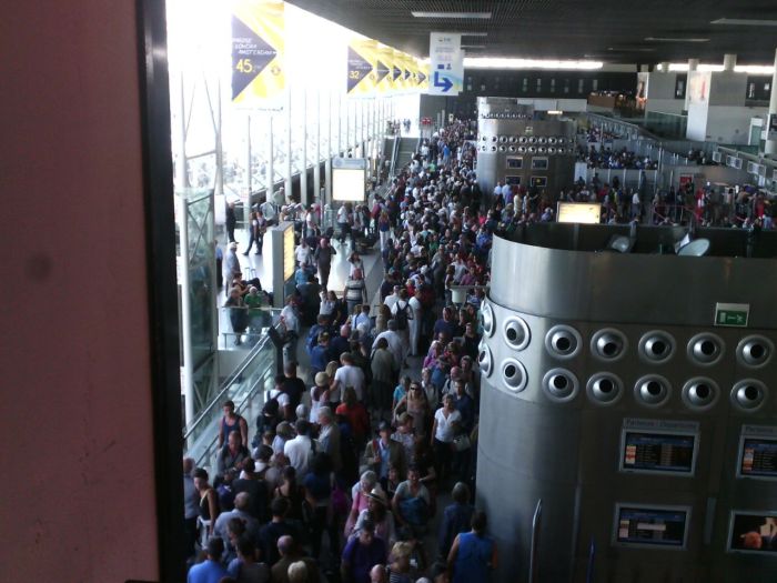 Nel terminal, i finger sputavano migliaia di passeggeri che confluivano a passo svelto verso la sala del ritiro bagagli e si sommavano a quelli scaricati dai bus navetta. Sembrava la scena di un film catastrofico o un colpo di stato. Mentre aspettavo la mia valigia al nastro numero 2 – che distribuiva contemporaneamente i bagagli di quattro voli – mi guardavo intorno demoralizzato e confuso. In questo caos si faceva largo un finanziare con un cane antidroga al guinzaglio, probabilmente – ho pensato – c’è ancora qualcuno che torna da Amsterdam e ammuccia l’erba o il fumo nella valigia. Alla mia sinistra, un uomo stava mangiando un arancino da un fazzoletto insivato e io non riuscivo a capire come diavolo se lo fosse procurato: l’aveva portato con se dalla città di provenienza? glielo hanno passato da fuori? Come ha fatto?