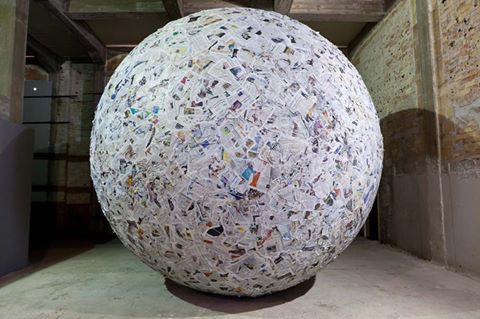 Pioggia torrenziale mette in tilt la raccolta differenziata. L’enorme palla di carta e cartoni assampanati proveniente da Scala Greca e Zona 10 sarà posizionata all’interno del Parco delle sculture della pista ciclabile con il provocatorio titolo “Rebuilding ‘sta minchia”.