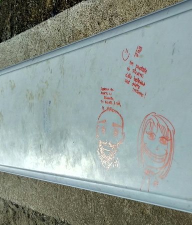 Imbrattata una delle installazioni artistiche in pista ciclabile… all’autore dello sfregio 30mila euro dall’Unione Europea…