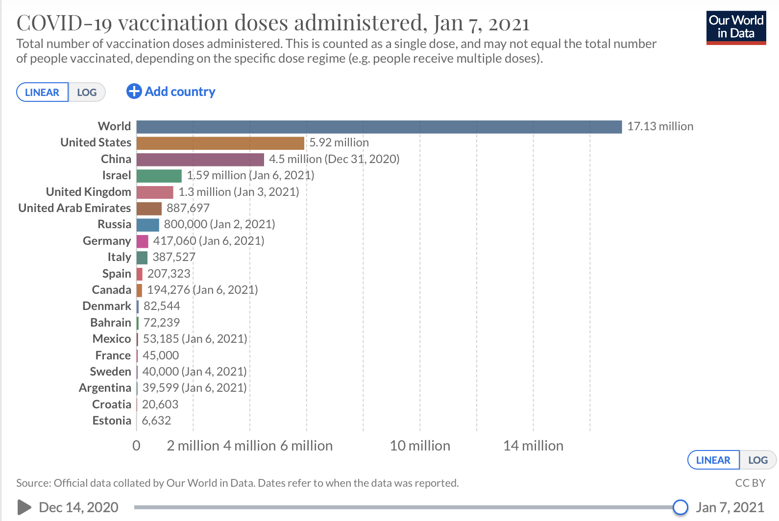 2. In valori assoluti, la Germania ha utilizzato 417mila dosi (dati al 6 gennaio) mentre l’Italia 387mila (dati al 7 gennaio)