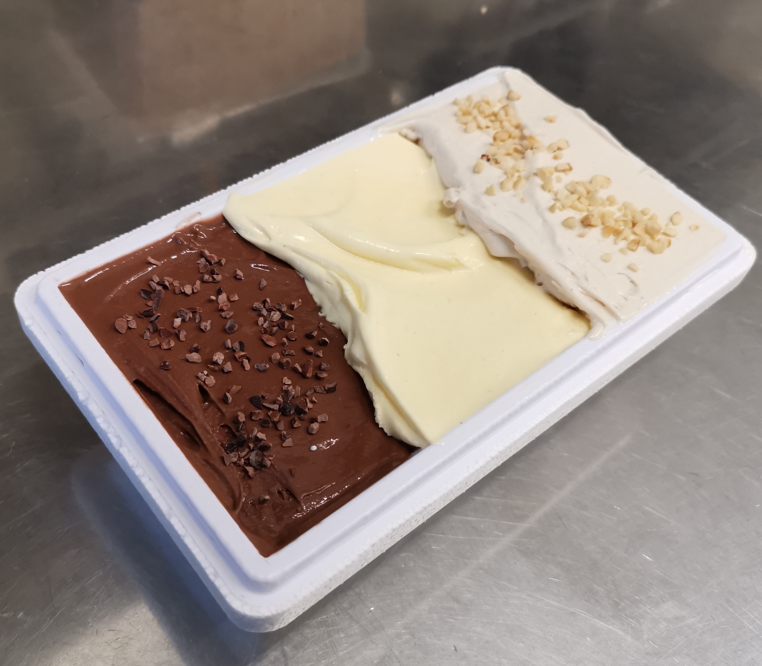 – Ma come fa a farci entrare 800 grammi di gelato in una vaschetta da 500?